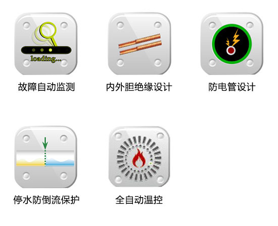 配有漏電開關(guān)保護(hù)、防電管設(shè)計、意外漏電保護(hù)、停水防倒流保護(hù)、超壓保護(hù)等多項保護(hù)功能,讓您使用安全無憂。 |